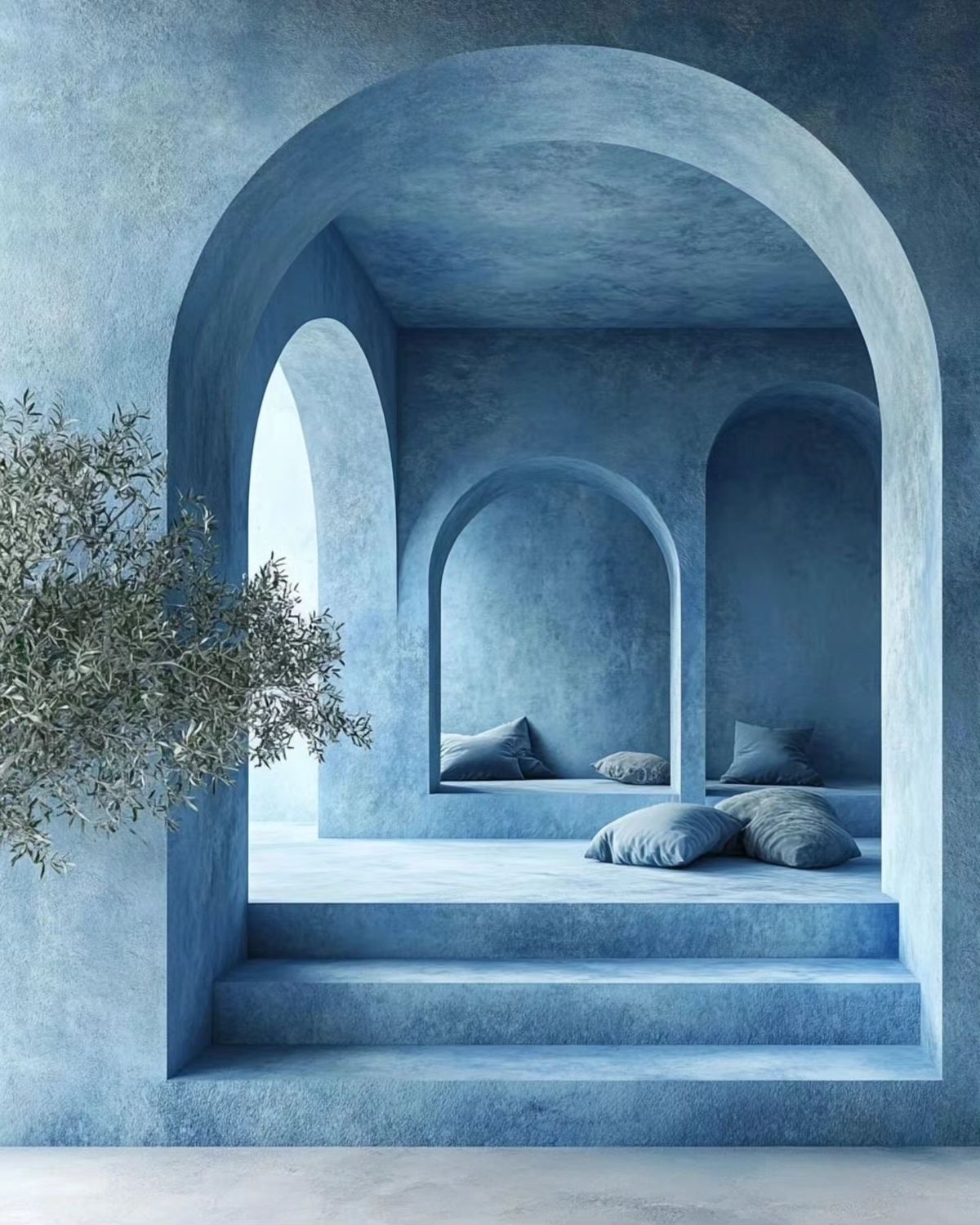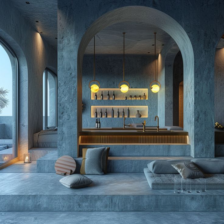 Azure Courtyard Retreat is a concept residential project centered around softness, light, and organic form. Inspired by Mediterranean architecture and nature-led living, the space was designed as a sanctuary — one that slows the pace of daily life through material honesty and spatial calm.
